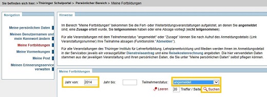 Für alle Veranstaltungen des Thüringer Instituts für Lehrerfortbildung, Lehrplanentwicklung und Medien werden in der Servicebox jeweils ein vorausgefülltes Formular "Dienstreiseantrag" und "Reisekostenrechnung" angeboten. Die hier verwendeten Daten stammen aus der jeweiligen Veranstaltung und Ihren persönlichen Daten, die Sie unter "Meine persönlichen Daten" selbst pflegen können. Für Veranstaltungen der Staatlichen Schulämter (regionale Fortbildung) steht Ihnen in der Box "Service" ein Formular "Dienstreiseantrag bzw. Antrag für eine Aus- bzw. Fortbildungsreise" zur Nutzung bereit.