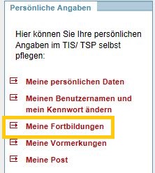 Betätigen Sie in der Box "Persönliche Angaben" den Link MEINE FORTBILDUNGEN.