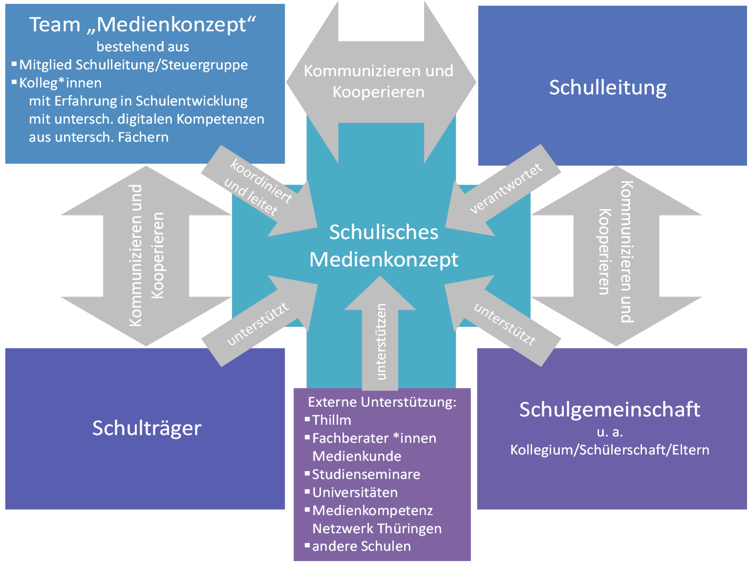 Die Erstellung eines schulischen Medienkonzepts bedarf der Mitwirkung verschiedener Instanzen: