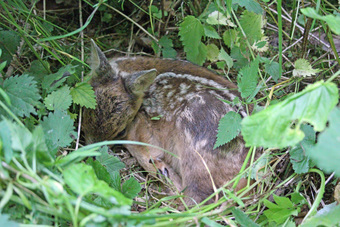 Das Foto hehört zur Serie "Hirsche". Es zeigt ein Rehkitz. Das Reh (Capreolus capreolus) ist die in Europa häufigste und kleinste Art der Hirsche. Es gelten die Nutzungsbedingungen der Mediothek und Pixiothek.