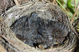 Das Foto hehört zur Serie "Amseln". Es zeigt ein Nest mit der Brut einer Amsel (Turdus merula), auch Schwarzdrossel genannt. Es gelten die Nutzungsbedingungen der Mediothek und Pixiothek.