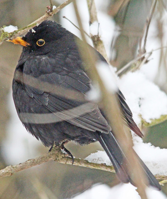 Das Foto hehört zur Serie "Amseln". Es zeigt eine Amsel (Turdus merula), auch Schwarzdrossel genannt, eine Vogelart der Familie der Drosseln. Die Männchen sind schwarz gefärbt und haben einen gelben Schnabel, das Gefieder der Weibchen ist größtenteils dunkelbraun. Es gelten die Nutzungsbedingungen der Mediothek und Pixiothek.