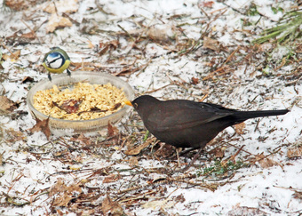 Das Foto hehört zur Serie "Amseln". Es zeigt eine Amsel (Turdus merula), auch Schwarzdrossel genannt, eine Vogelart der Familie der Drosseln. Die Männchen sind schwarz gefärbt und haben einen gelben Schnabel, das Gefieder der Weibchen ist größtenteils dunkelbraun. Es gelten die Nutzungsbedingungen der Mediothek und Pixiothek.