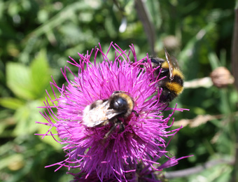 Das Foto hehört zur Serie "Hummeln". Es zeigt eine Dunkle Erdhummel (Bombus terrestris). Sie ist eine schwarze Hummel mit zwei gelben Querbinden und einer weißen Hinterleibspitze. Es gelten die Nutzungsbedingungen der Mediothek und Pixiothek.