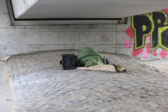 Obdachloser unter einer Brücke