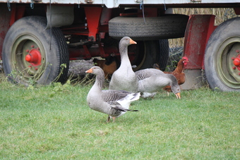 Das Foto gehört zur Serie "Bauernhof". Es zeigt Gänse. Die Gänse (Anserinae) sind in der biologischen Systematik der Vögel eine Unterfamilie der Entenvögel. Das Bild ist unter CC0 lizenziert und kann somit frei verwendet werden.