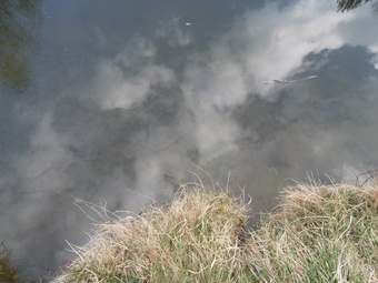 Das Bild zeigt Wolken, die sich im Teich spiegeln. Das Bild ist unter CC0 lizenziert und kann somit frei verwendet werden.