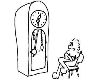 Das Bild gehört zur Serie "Paul". Es zeigt Paul neben einer Standuhr sitzend. Das Bild ist unter CC0 lizenziert und kann somit frei verwendet werden.