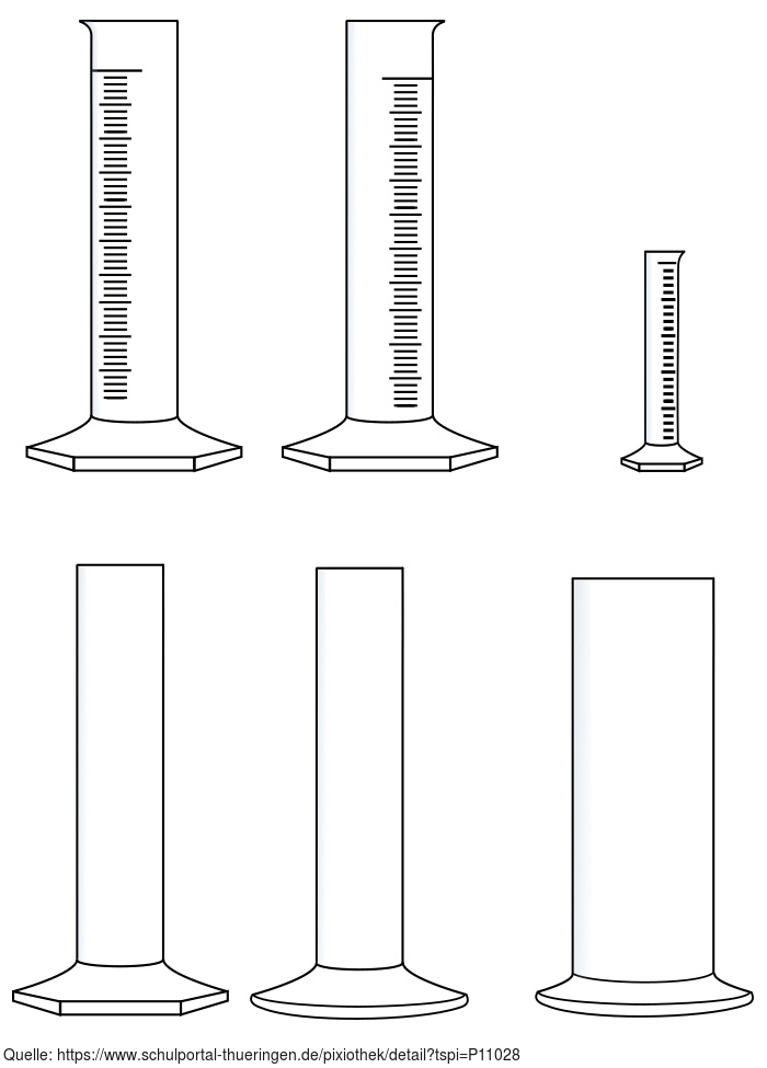 Das Bild gehört zur Serie "Chemie Grafiken". Es zeigt verschiedene Standzylinder und Messzylinder zur Gestaltung von Arbeitsblättern. Das Bild ist unter CC0 lizenziert und kann somit frei verwendet werden.