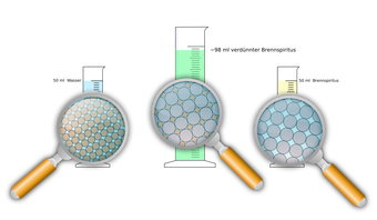 Das Bild gehört zur Serie "Chemie Grafiken". Es veranschaulicht ein Experiment zur Volumenbetrachtung beim Mischen von Aklohol und Wasser. Die Grafik kann zur Gestaltung von Arbeitsblättern verwendet werden. Das Bild ist unter CC0 lizenziert und kann somit frei verwendet werden.