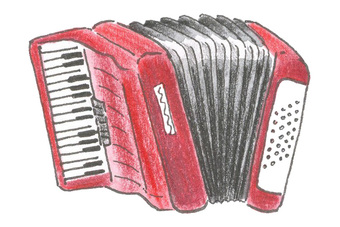 Das Bild gehört zur Serie "Musikinstrumente". Es zeigt ein gezeichnetes Akkordeon. Es gelten die Nutzungsbedingungen der Mediothek und Pixiothek.