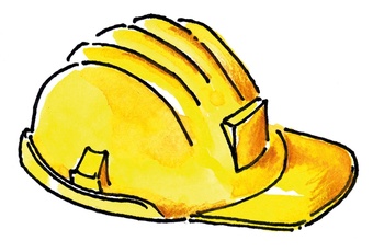 Das Bild zeigt einen gezeichneten Schutzhelm für Arbeitende in der Bautechnik, Montage.... Es gelten die Nutzungsbedingungen der Mediothek und Pixiothek.