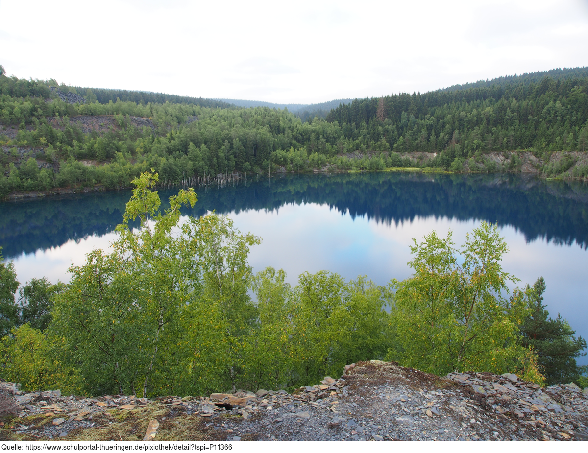 Das Bild gehört zur Serie "Thüringischer Schieferpark Lehesten". Es zeigt einen Blick auf das artenreiche Naturschutzgebiet rund um den ehemaligen Tagebau und das heutige technische Denkmal. Es gelten die Nutzungsbedingungen der Mediothek und Pixiothek.