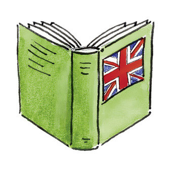 Das Bild gehört zur Serie "ClipArt - Medien". Es zeigt ein gezeichnetes Lehrbuch für Englisch. Es gelten die Nutzungsbedingungen der Mediothek und Pixiothek.
