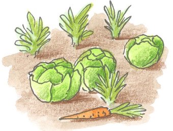Das Bild gehört zur Serie "Gemüse". Es zeigt ein gezeichnetes Beet mit Gemüsepflanzen und Feldgemüse. Es gelten die Nutzungsbedingungen der Mediothek und Pixiothek.