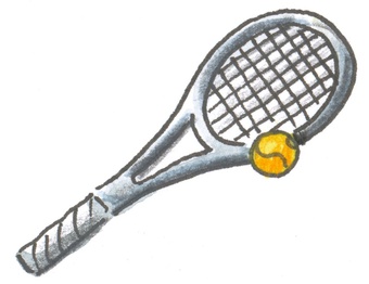 Das Bild gehört zur Serie "Sport". Es zeigt einen gezeichneten Tennisschläger mit Tennisball. Es gelten die Nutzungsbedingungen der Mediothek und Pixiothek.