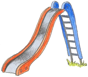 Das Bild gehört zur Serie "Spielzeuge". Es zeigt eine gezeichnete Rutsche vom Kinderspielplatz. Es gelten die Nutzungsbedingungen der Mediothek und Pixiothek.