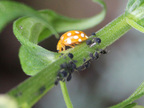Das Foto hehört zur Serie "Käfer". Es zeigt einen Siebenpunkt-Marienkäfer oder Siebenpunkt (Coccinella septempunctata) aus der Familie der Marienkäfer. Es gelten die Nutzungsbedingungen der Mediothek und Pixiothek.