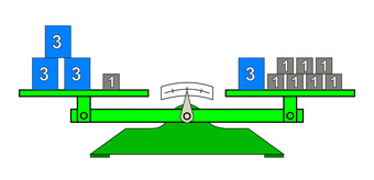 Das Bild gehört zur Serie "Mathematik, Gleichungen". Es veranschaulicht die Probe für die Lösung der linearen Gleichung 21. Durch Einsetzen der gefundenen Lösung für die Variable x entsteht im Bild auf beiden Seiten der Waage die gleiche Summe. Das Bild ist unter CC0 lizenziert und kann somit frei verwendet werden.