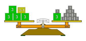 Das Bild gehört zur Serie "Mathematik, Gleichungen". Es veranschaulicht die Probe für die Lösung der linearen Gleichung 26. Durch Einsetzen der gefundenen Lösung für die Variable x entsteht im Bild auf beiden Seiten der Waage die gleiche Summe. Das Bild ist unter CC0 lizenziert und kann somit frei verwendet werden.