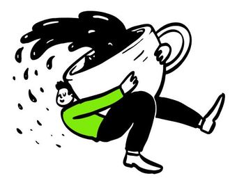 Die Zeichnung "coffee" aus der Serie "Open Doodles" zeigt einen jungen Mann mit einer überdimensionalen Kaffeetasse. Das Bild ist unter CC0 lizenziert und kann somit frei verwendet werden.