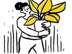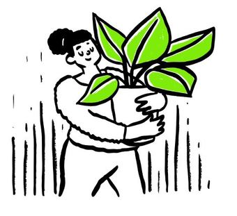 Die Zeichnung "plant" aus der Serie "Open Doodles" zeigt eine Frau, die einen Blumentopf mit Pflanze trägt. Das Bild ist unter CC0 lizenziert und kann somit frei verwendet werden.