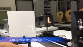 Das Video zeigt ein Experiment zur Bildentstehung am Hohlspiegel. Das Video ist unter CC0 lizenziert und kann somit frei verwendet werden.