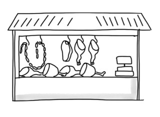 Das Bild gehört zur Serie "Grundschulwortbilder". Es zeigt eine Metzgerei als Symbolbild für den Buchstaben M. Das Bild ist unter CC0 lizenziert und kann somit frei verwendet werden. Es ist neben weiteren Bildern auch hier zu finden: https://moodlelab.moodleschule.de/