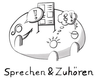 Das Bild gehört zur Serie "Deutsch". Es zeigt ein Symbolbild für "Sprechen und Zuhören". Das Bild ist unter CC0 lizenziert und kann somit frei verwendet werden. Es ist neben weiteren Bildern auch hier zu finden: https://moodlelab.moodleschule.de/