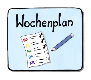 Das Bild gehört zur Serie "Im (virtuellen) Klassenraum (Buttons)". Es zeigt ein Symbolbild für "Wochenplan". Das Bild ist unter CC0 lizenziert und kann somit frei verwendet werden. Es ist neben weiteren Bildern auch hier zu finden: https://moodlelab.moodleschule.de/