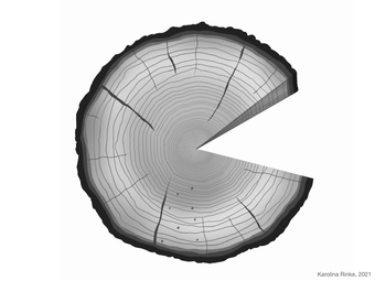 Die Grafik gehört zur Serie "Holz". Das Bild zeigt den Querschnitt eines Baumstammes, s/w, ohne Beschriftung. Es gelten die Nutzungsbedingungen der Mediothek und Pixiothek.