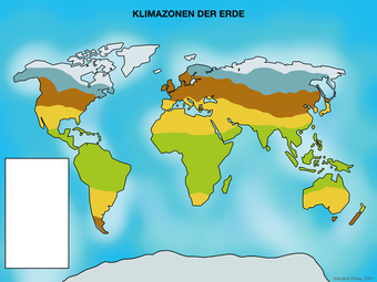 Das Bild verdeutlicht die Lage der Klimazonen der Erde. Bild-Variante: farbig; unbeschriftet; leeres Textfeld. Es gelten die Nutzungsbedingungen der Mediothek und Pixiothek.