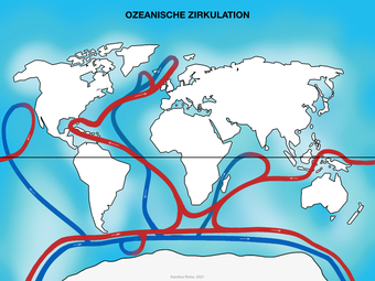 Das Bild gehört zur Serie „Zirkulationssysteme der Erde“. Es verdeutlicht die ozeanische Zirkulation. Bild-Variante: farbig; unbeschriftet. Es gelten die Nutzungsbedingungen der Mediothek und Pixiothek.