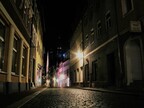 Motiv eines Stadtrundganges durch Pößneck (Ostthüringen) bei Nacht. Abgebildet ist der Blick durch die Umzäunung des Gymnasiums Am Weißen Turm auf das Museum 642, Pößnecker Museum für Stadtgeschichte.. Es gelten die Nutzungsbedingungen der Mediothek und Pixiothek.