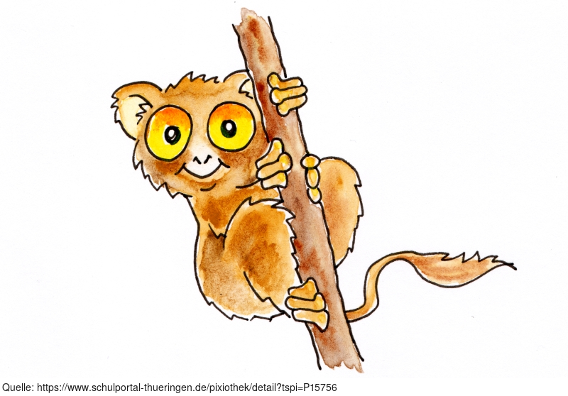 Das Bild gehört zur Serie "Witzige Fakten über Tiere". Es zeigt einen gezeichneten Koboldmaki. Der ursprüngliche Begleittext aus dem Projekt der Urheberin lautet so: "Kulleräugige Kobolde. Koboldmakis haben relativ zur Körpergröße die größten Augen aller Säugetiere. Ihre Augen sind größer als ihr Gehirn und können nicht bewegt werden. Aber dafür können Koboldmakis den Kopf um fast 360° drehen." Die Zeichnerin kann bei Twitter über @_Lautes_Denken kontaktiert werden. Für das Bild gelten die Nutzungsbedingungen der Mediothek und Pixiothek.