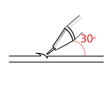 Das Bild gehört zur Serie "Künstlerische Drucktechniken - Tiefdruck - Kaltnadelradierung". Es zeigt eine im Winkel von 30 Grad auf die Druckplatte angesetzte Kaltnadel. Bei der Kaltnadelradierung werden die Linien in die Druckplatte mit einer