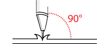 Das Bild gehört zur Serie "Künstlerische Drucktechniken - Tiefdruck - Kaltnadelradierung". Es zeigt eine im Winkel von 90 Grad auf die Druckplatte angesetzte Kaltnadel. Bei der Kaltnadelradierung werden die Linien in die Druckplatte mit einer
