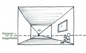 Das Bild gehört zur Serie "Projektionsarten". Es zeigt die Perspektive mit einem Fluchtpunkt am Beispiel eines Innenraumes. Es gelten die Nutzungsbedingungen der Mediothek und Pixiothek.