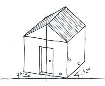 Das Bild gehört zur Serie "Projektionsarten". Es zeigt die dimetrische Projektion am Beispiel eines Gebäudes. Es gelten die Nutzungsbedingungen der Mediothek und Pixiothek.
