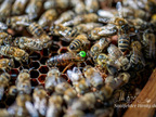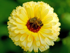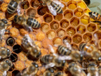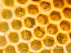 Das Bild gehört zur Serie "Saalfelder Honig", aufgenommen vom Imker Bernd Rümpler, Inhaber von saalfelder-honig.de. Zu sehen ist eine weibliche Honigbiene (Arbeiterin) mit Pollenhöschen.