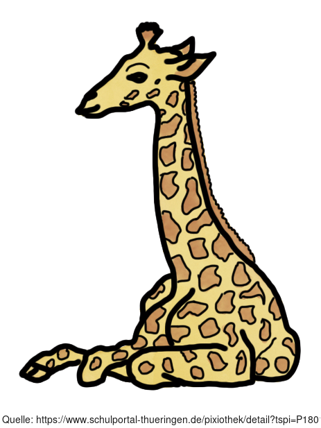 Das Bild zeigt eine gezeichnete Giraffe. Das Bild ist unter CC0 lizenziert und kann somit frei verwendet werden. Es ist neben weiteren Bildern auch hier zu finden: https://moodlelab.moodlesc​​​​hule.de/