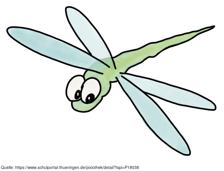 Das Bild zeigt eine gezeichnete Libelle. Das Bild ist unter CC0 lizenziert und kann somit frei verwendet werden. Es ist neben weiteren Bildern auch hier zu finden: https://moodlelab.moodleschule.de/