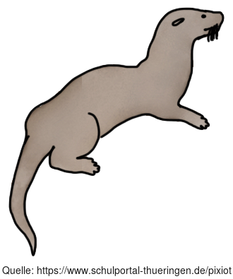 Das Bild zeigt einen gezeichneten Fischotter. Das Bild ist unter CC0 lizenziert und kann somit frei verwendet werden. Es ist neben weiteren Bildern auch hier zu finden: https://moodlelab.moodlesc​​​​hule.de/
