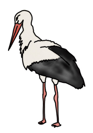 Das Bild zeigt einen gezeichneten Storch. Das Bild ist unter CC0 lizenziert und kann somit frei verwendet werden. Es ist neben weiteren Bildern auch hier zu finden: https://moodlelab.moodleschule.de/