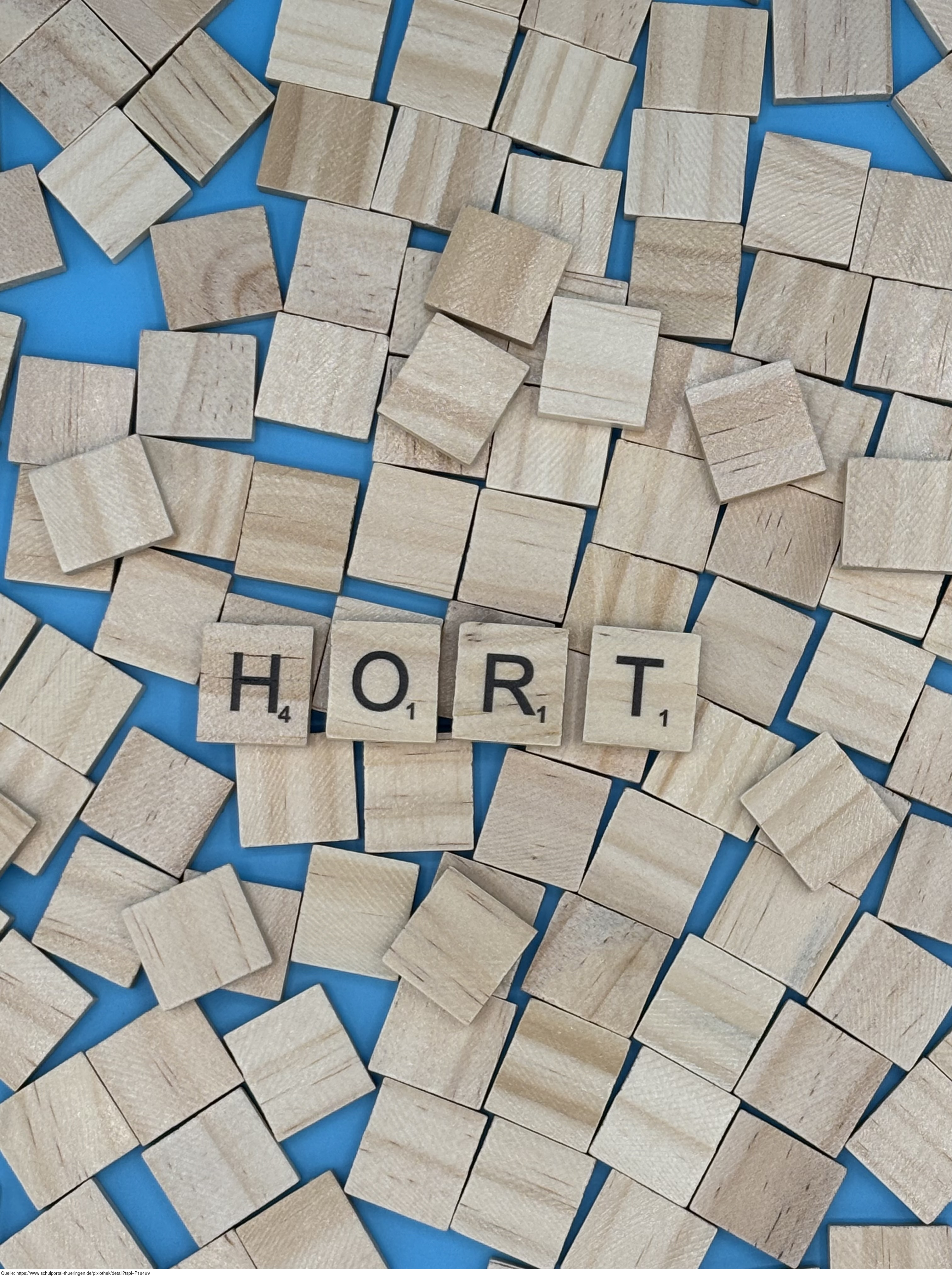 Aus Buchstaben wurde das Wort "Hort" gelegt. Es gelten die Nutzungsbedingungen der Mediothek und Pixiothek.