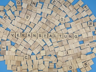 Aus Buchstaben wurde das Wort "Veranstaltung" gelegt. Es gelten die Nutzungsbedingungen der Mediothek und Pixiothek.