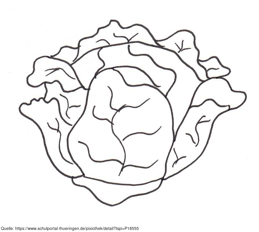 Das Bild zeigt einen gezeichneten Kopfsalat (s/w). Es gehört zur Serie "Ernährungspyramide zum Basteln und Gestalten" und findet u.a. im gleichnamigen Lernobjekt unter https://www.schulportal-thueringen.de/web/guest/media/detail?tspi=18517 Verwendung. Es gelten die Nutzungsbedingungen der Mediothek und Pixiothek.