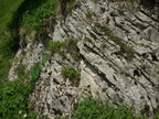 Das Bild zeigt eine metamorphe Wechsellagerung von plattigem Quarzit und Phyllitschiefer am Rande des Zechsteins. Die Fundstelle liegt am Ufer der Weißen Elster in Berga a.d. Weißen Elster.