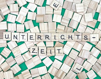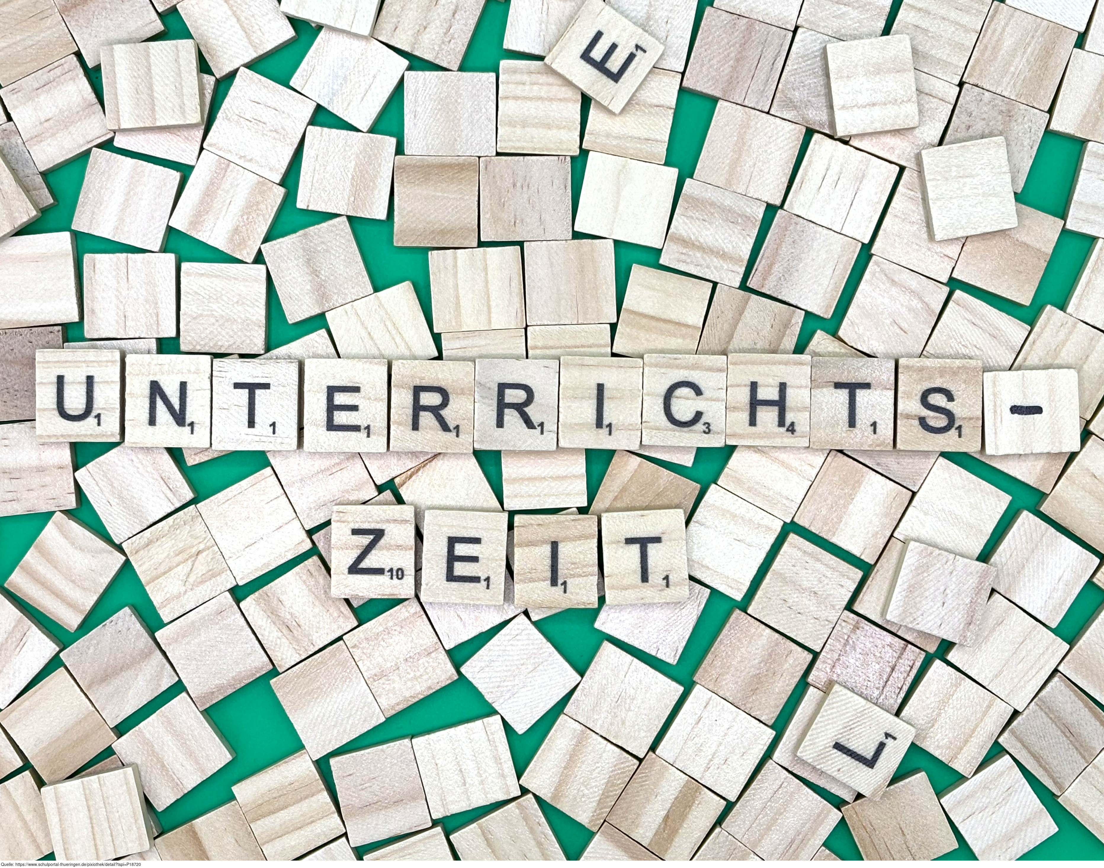 Aus Buchstaben wurde der Begriff „Unterrichtszeit" gelegt. Es gelten die Nutzungsbedingungen der Mediothek und Pixiothek.