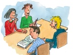 Die Zeichnung zeigt eine symbolhafte Szene zur Darstellung von Gruppenarbeit. Das Bild ist unter CC0 lizenziert und kann somit frei verwendet werden. Es ist neben weiteren Bildern auch hier zu finden: https://cocomaterial.com